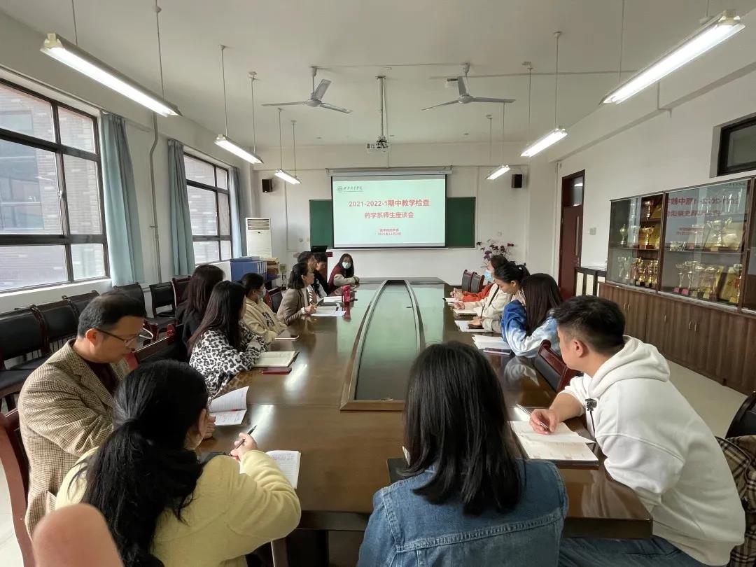根据学校《关于开展2021-2022学年第一学期期中教学检查工作的通知》和《E星综合网页版2021-2022学年第一学期期中教学检查工作安排》,为进一步规范教学运行管理,不断提高教学质量,2021年11月2日下午13时,E星综合网页版药学系组织全系教师和各班的教学信息员或学习委员在E星综合网页版会议室召开药学系师生座谈会。