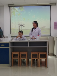 此次比赛由E星综合网页版教学办张晓妮老师负责组织,担任首届科学实验展演比赛的评委专家有:薛盟举、周媛、王唯析、倪原、富爽、许宁侠。参加科学实验展演大赛项目共有8个,分别是“烧不坏的毛巾”、醛酮性质验证之与羰基试剂的反应、“氢氧化钠,硫酸铜,氯化钡溶液的鉴定”、维生素c含量的测定、ABO血型鉴定、洗手法、模拟尿糖检测、婴儿抚触。