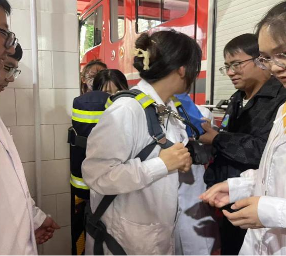 活动开始后,在消防队的带领下志愿者们参观了消防中心、并学习了解了灭火器的类型与灭火器的使用方法,同时也体验了在重大火灾时用的呼吸器与消防服,消防服的自重和呼吸器的体验佩戴也让志愿者们深刻体会到消防员工作的不易与伟大。